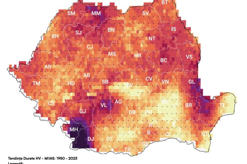 De exemplu, în județele Mehedinți și Dolj s-a înregistrat o creștere de 4 valuri de căldură/an pe durata ultimilor 74 de ani.