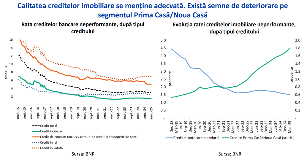 Calitatea creditelor imobiliare se menține adecvată și ca să o măsoare, BNR folosește un indicator care se numește rata creditelor neperformante, care reprezintă proporția creditelor care au întârzieri la plată mai mari de 90 de zile. Această proporție a creditelor cu probleme este foarte joasă în cazul creditelor imobiliare – undeva la 1,6%, sub rata creditelor nereformante aferentă creditelor de consum, care este undeva la 5%.