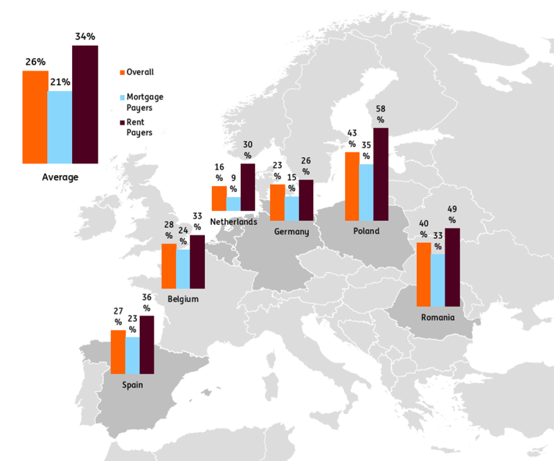 Măsura în care problemele chiriașilor afectează rezultatele generale depinde de rolul pe care piața închirierilor îl joacă pe piața imobiliară a fiecărei țări. Dificultățile legate de costul locuințelor variază de la 9% dintre proprietarii olandezi la 58% dintre chiriașii polonezi.
