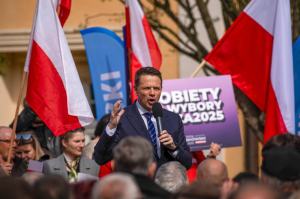 Sloganul său de campanie, „Polonia pe primul loc, polonezii pe primul loc”, reflectă punctul său de vedere cu privire la cei aproape un milion de refugiați ucraineni care trăiesc în această țară membră a UE și a NATO.