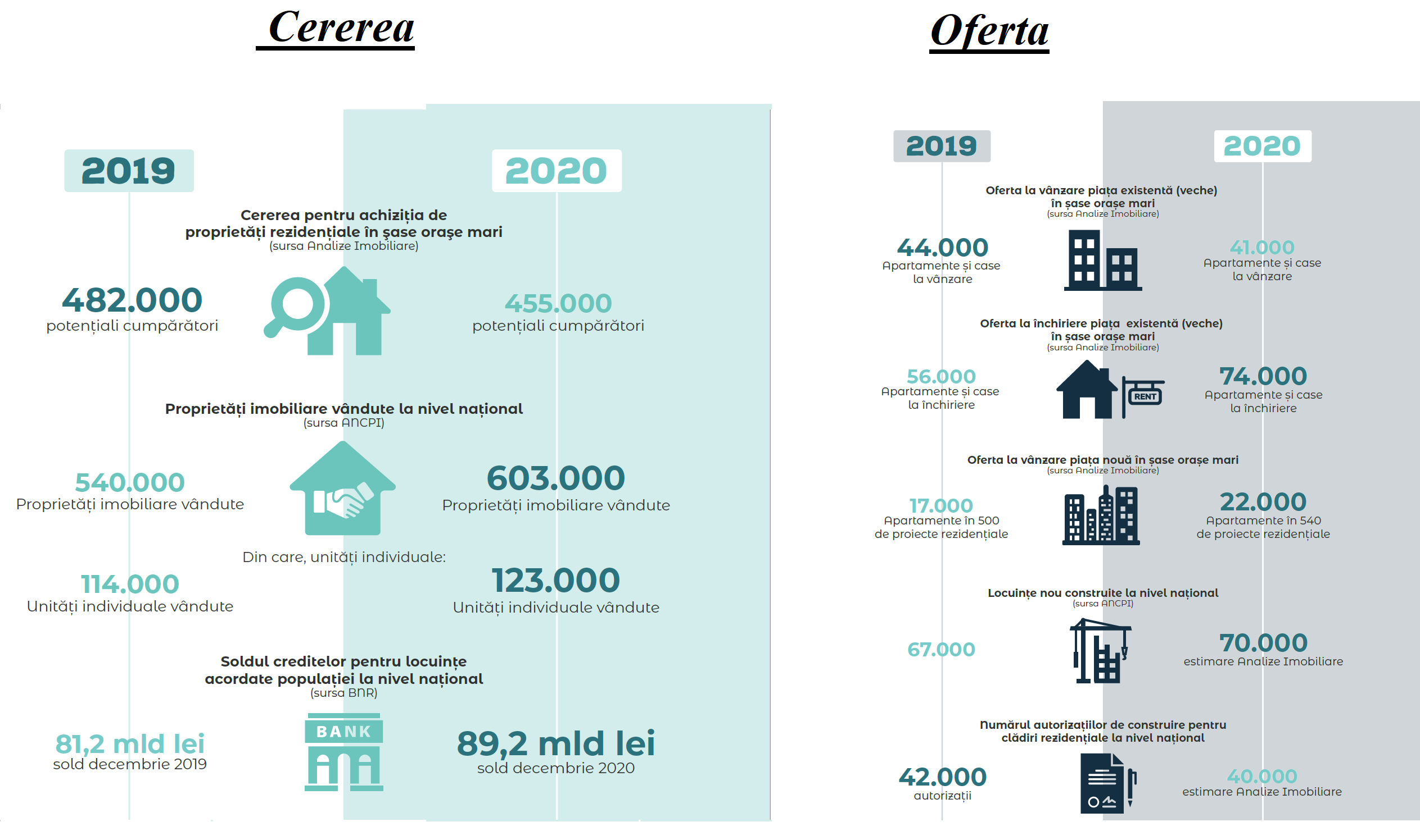 Deși în ușoară scădere față de 2019, de la 482.000 de potențiali cumpărători, cererea pentru achiziția de apartamente și case în cele șase orașe mari și-a revenit gradual odată cu ridicarea restricțiilor și a atins 455.000 de potențiali cumpărători în 2020.