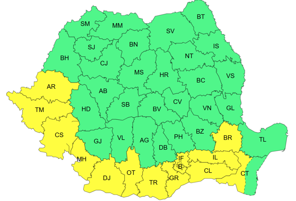 Joi în Banat, sudul Crișanei și al Olteniei, sudul, centrul și estul Munteniei, precum și în sud-vestul Dobrogei va fi caniculă și disconfort termic ridicat, iar indicele temperatură-umezeală (ITU) local va atinge pragul critic de 80 de unități.