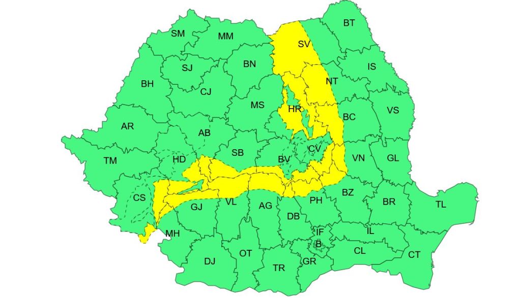 Un cod galben de ger va viza cinci județe din nordul Moldovei și estul Transilvaniei, începând de vineri seară, ora 20:00, până sâmbătă, 10 ianuarie, ora 20:00.