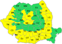 Administratia Nationala de Meteorologie (ANM) a emis joi dimineata o noua avertizare cod portocaliu de canicula pentru ziua de joi, in 6 judete din vestul tarii. Totodata, pentru ziua de joi este in vigoare o atentionare cod galben de canicula si disconfort termic pentru cea mai mare parte din tara. Temperaturile ridicate se mentin vineri, fiind de asemenea in vigoare o avertizare de cod galben de canicula, pentru cea mai mare parte a tarii.