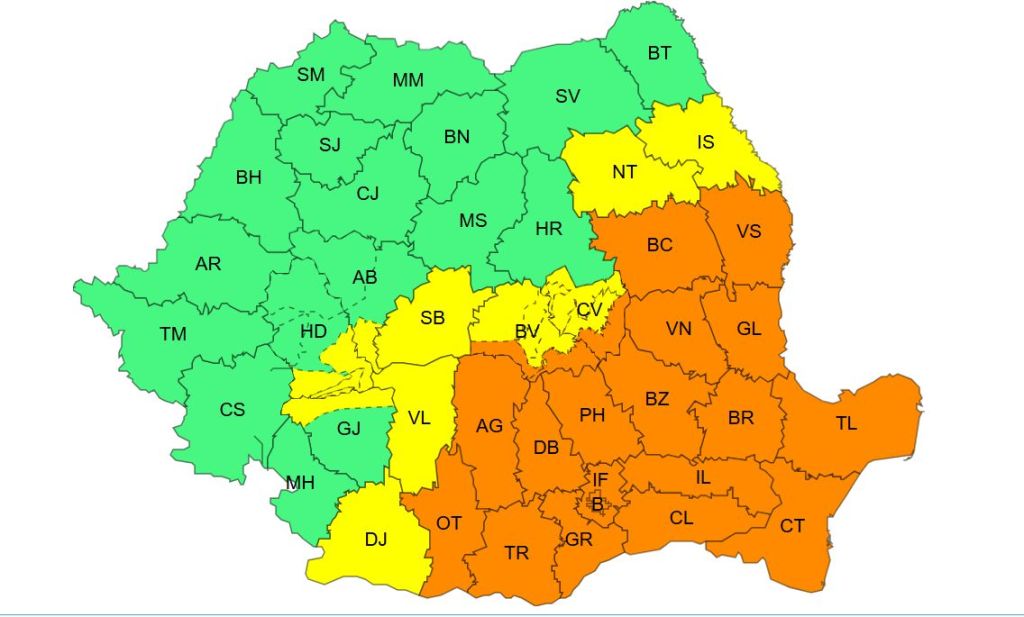 București și 17 județe, sub cod portocaliu