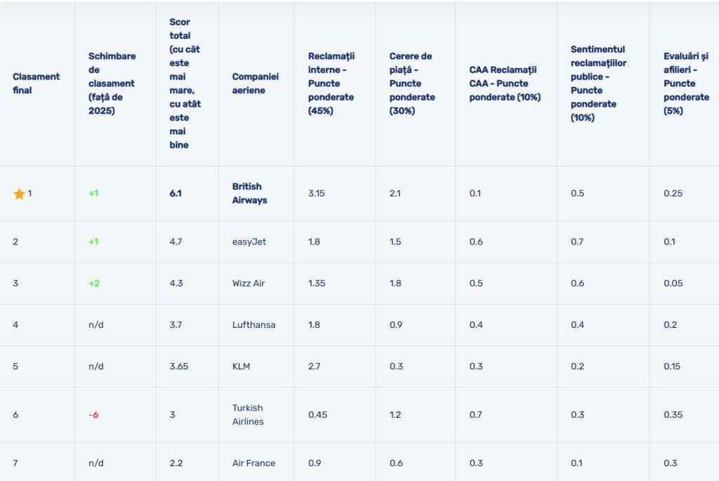 Clasamentul complet poate fi consultat pe site-ul AirAdvisor.