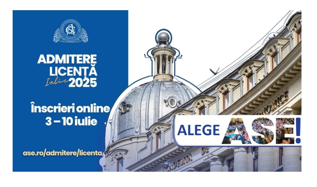 Academia de Studii Economice din București, kilometrul zero al învățământului superior economic și de afaceri din România, recunoscută pentru pregătirea absolvenților săi în domenii de actualitate ale pieței forței de muncă, anunță că, în perioada 3-10 iulie, au loc, online, înscrierile candidaților la programele sale de licență pentru anul universitar 2025-2026. Cele 12 facultăți ale universității oferă candidaților posibilitatea de a-și alege traseul academic și, implicit, viitoarea carieră, în funcție de propriile interese, disponibilități și aspirații profesionale.