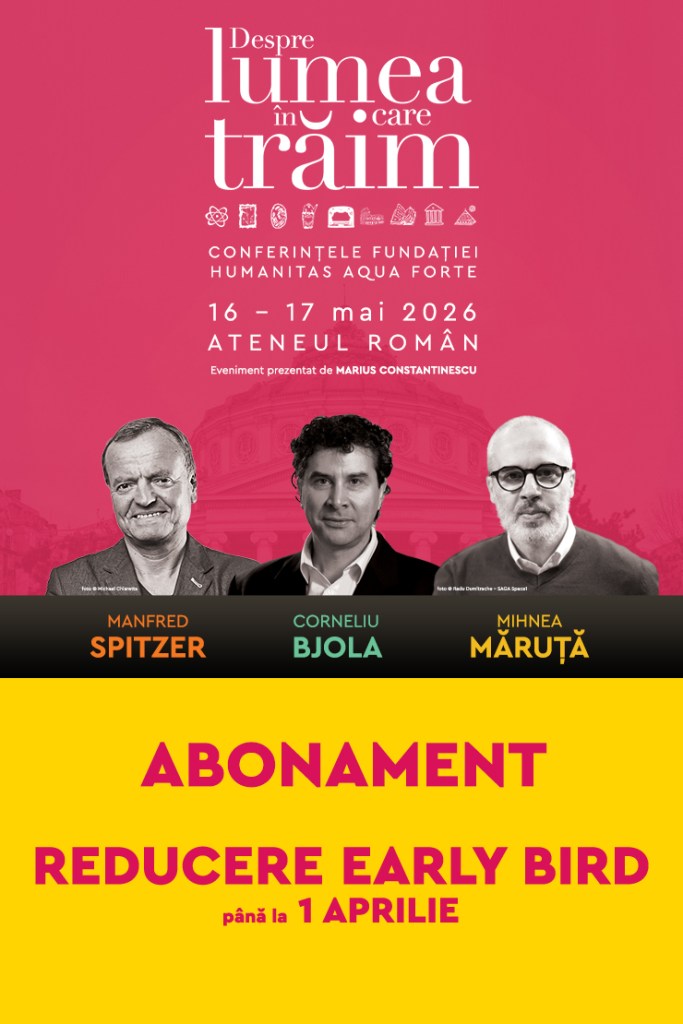 Până pe 1 aprilie, puteți cumpăra abonamente Early Bird în sală la prețul redus de 200 de lei. (https://eventbook.ro/other/bilete-festivalul-de-conferinte-despre-lumea-in-care-traim-2026-abonament)