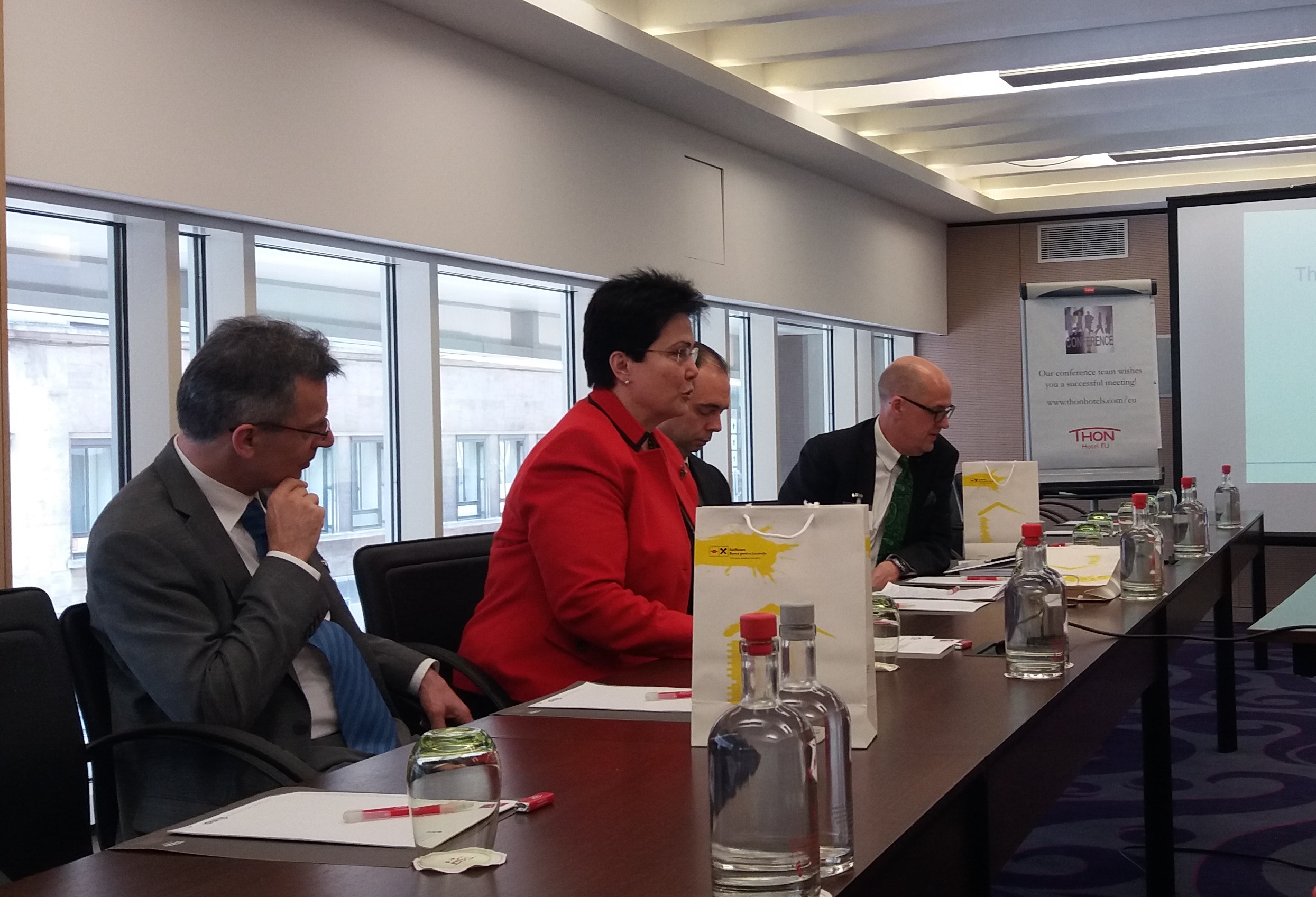 Mai jos, imagine din cadrul unei intalniri de vineri intre conducerea Federatiei Europene a bancilor pentru locuinte si executivii romani ai Raiffeisen bpl si BCR Bpl, Aurelia Cionga si respectiv Lucian Anghel: