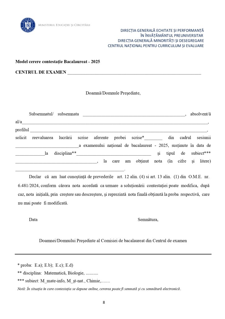 Model de contestație pentru BAC 2025