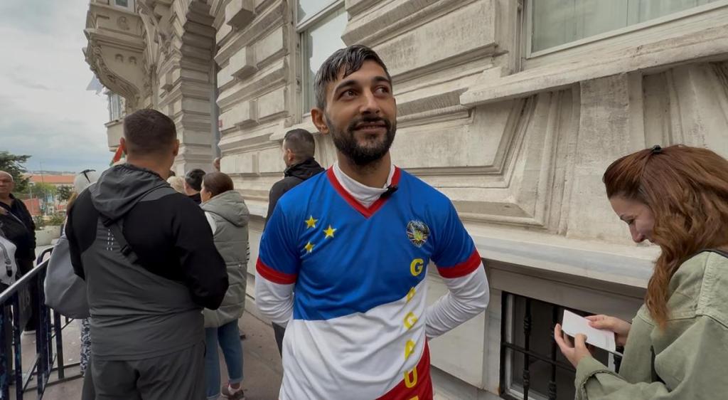 Un tânăr îmbrăcat cu un tricou pe care scrie „găgăuz” se apropie de secția de votare împreună cu soția și cu câțiva cunoscuți. Bărbatul spune că locuiește în Turcia de mulți ani și se mândrește cu faptul că este de etnie găgăuză.