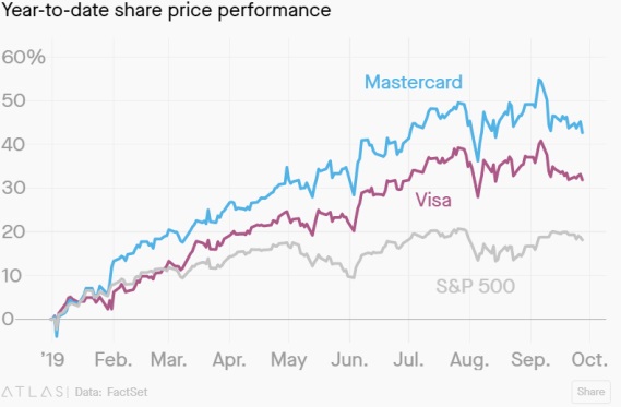 Companiile de plăți sunt iubite de investitori în prezent, care pariază pe tranzacții digitale masive și în continuă creștere, pe măsură ce plățile în numerar sunt în declin și comerțul se mută online. Piața de 33 de trilioane de dolari a plăților este penetrată în proporție de 44% de carduri (datele exclud China, unde domnesc Alipay și WeChat Pay, iar concurența străină este ferecată). Analiștii estimează o rată de creștere de 9% în următorii cinci ani, în scădere față de 10% între 2013 și 2018.