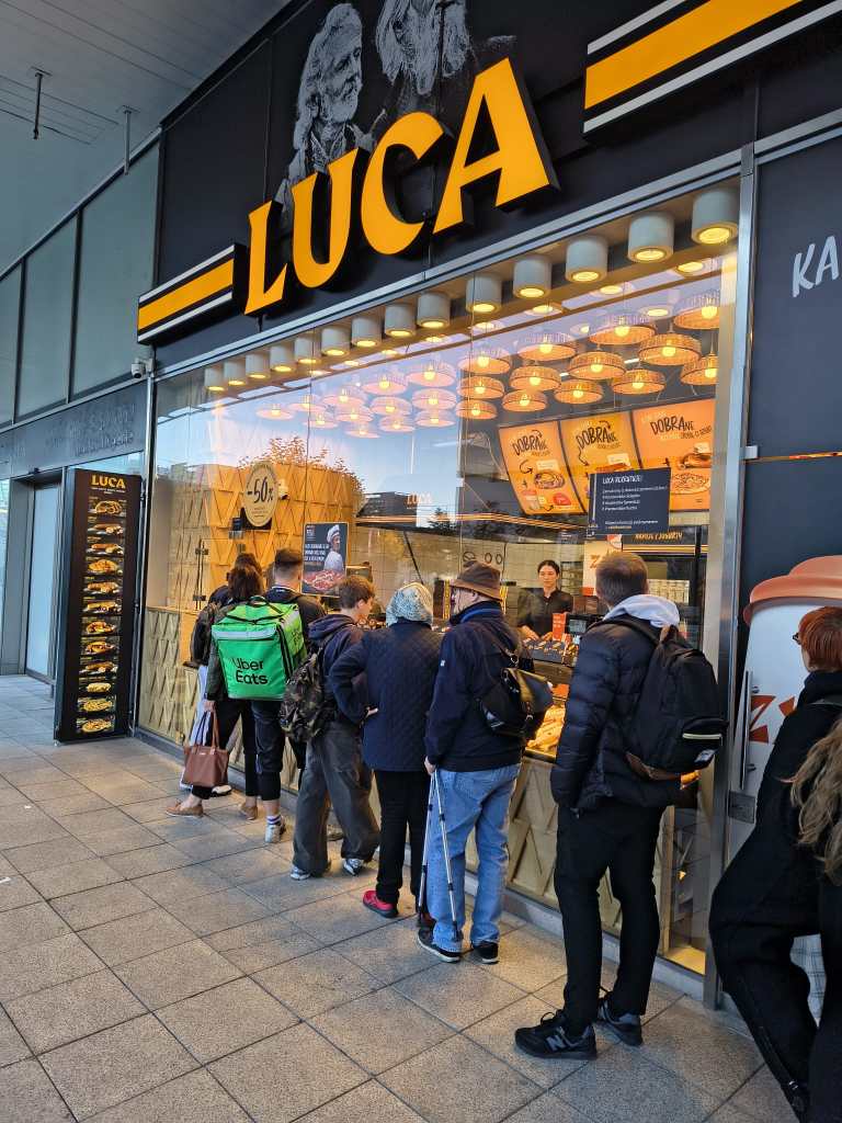 Mergând spre centru, într-un Uber condus de un cetățean uzbek, vedem din mașină una dintre locațiile Luca din capitala Poloniei, situate chiar lângă un magazin alimentar al brandului polonez Zabka, prezent în România sub numele Froo. O imagine surprinsă în fugă asupra legăturilor dintre cele două țări.
