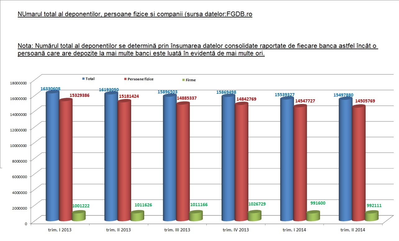 „Depozitele rezidentilor clienti neguvernamentali s-au diminuat in luna iunie 2014 cu 0,5 la suta fata de luna mai 2014, pana la nivelul de 214.140,4 milioane lei. Depozitele in lei ale gospodariilor populatiei au crescut cu 0,1 la suta, pana la 81 390,4 milioane lei. La 30 iunie 2014, depozitele in lei ale gospodariilor populatiei au inregistrat o crestere de 5,6 la suta (4,9 la suta in termeni reali) fata de 30 iunie 2013.
