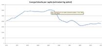 Tragic e la energie, aici trendul e clar. Pe langa boom exista o crestere clara a preturilor. Si aici cred ca e explicatia cresterii tuturor preturilor, pentru toate produsele. Asta desi am devenit mult mai eficienti. Inseamna ca nu prea mai putem produce mai multa energie. Doar sa devenim mai eficienti.