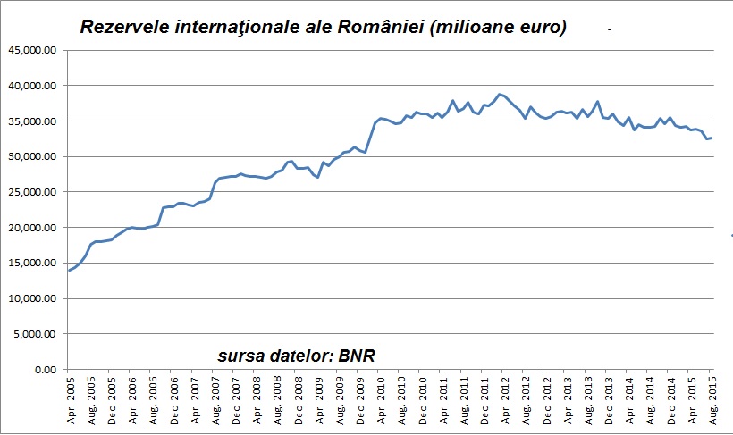 In prezent, Rezervele internaţionale ale României (valute plus aur) la 30 septembrie 2015 au fost de 32,475 miliarde euro, faţă de 32,669 miliarde euro la 31 august 2015.