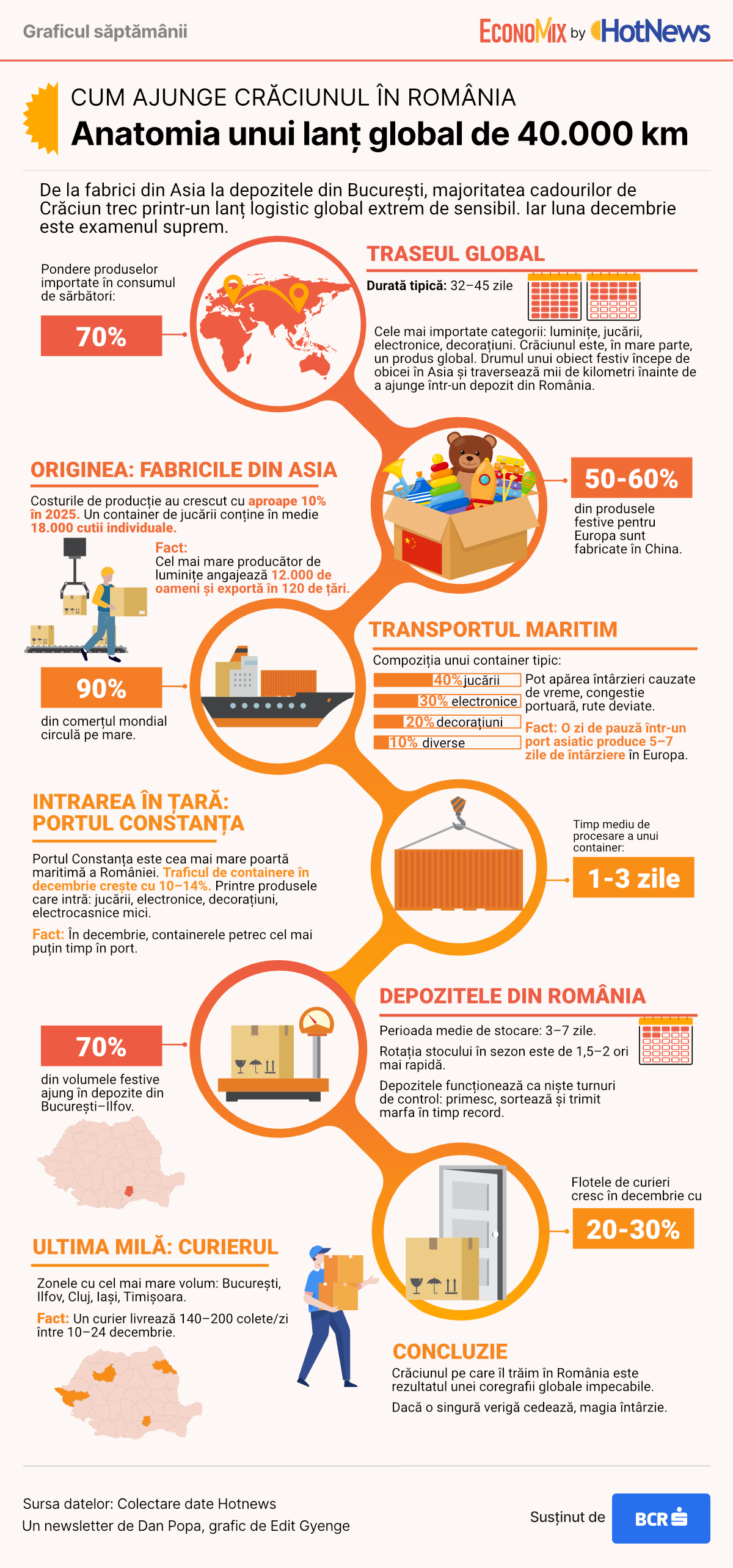 INFOGRAFIC Cum ajunge Crăciunul în România. Anatomia unui lanț global de 40.000 km
