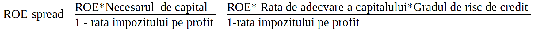 Tehnic, ROE spread ia în calcul: necesarul de capital (fonduri proprii) pe care banca trebuie să-l dețină pentru a respectă cerințele prudențiale privind adecvarea capitalului, rata impozitului pe profit, pentru că acționarul băncii vrea o rentabilitate netă- având în vedere că ținta de rentabilitate urmărește un profit în valori nete de impozit și ținta de rentabilitate financiară.