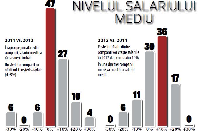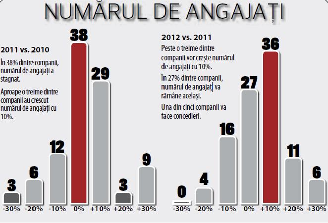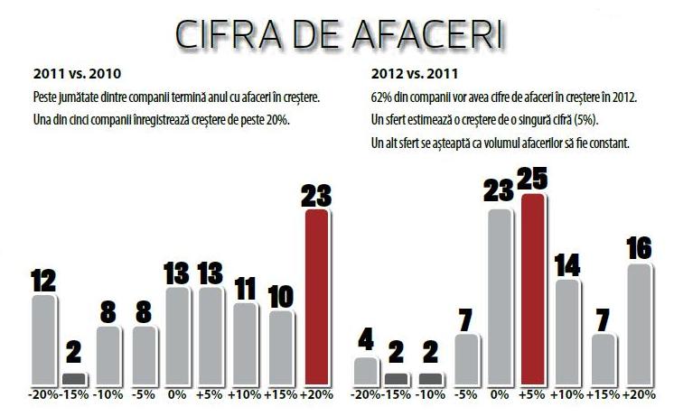 Liderii mediului de afaceri afiseaza un optimism rezervat pentru anul viitor, dupa ce in 2011 numarul de angajati a crescut, in medie (in 2011 fata de 2010) cu 2,94%, cifra de afaceri a crescut, in medie, in aceeasi perioada cu 4,06%, iar nivelul salariului mediu a crescut, in medie, in 2011 fata de 2010 cu 1,76%. Datele au fost obtinute in urma raspunsurilor primite de la peste 70 de CEO ai unor companii romanesti si/sau straine care isi desfasoara activitatea in Romania, reuniti la o masa rotunda de catre Fundatia Romanian Business Leaders.