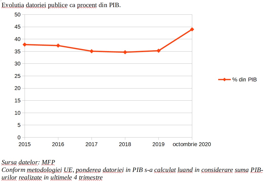 Datoria publică a ajuns la 44% din PIB, în octombrie. Nu au sosit datele pe noiembrie, dar următorul ministru al Finanțelor va trebui să prezinte un raport, că se depășește 45%