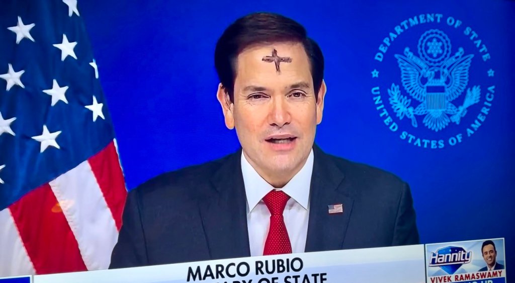 De ce a apărut secretarul de stat american Marco Rubio cu o cruce pe frunte într-un interviu