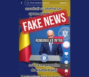 „Vă semnalăm o dezinformare distribuită recent în mediul online, referitoare la așa-zise «declarații», realizate cu ajutorul programelor de inteligență artificială, din care reiese că prim-ministrul Ilie Bolojan anunță intrarea României în război, începând cu luna septembrie 2025. Clipul este fals și face parte dintr-o acțiune de manipulare intenționată a opiniei publice. Prim-ministrul României nu a susținut astfel de declarații, iar România nu intră în război”, a precizat MApN.