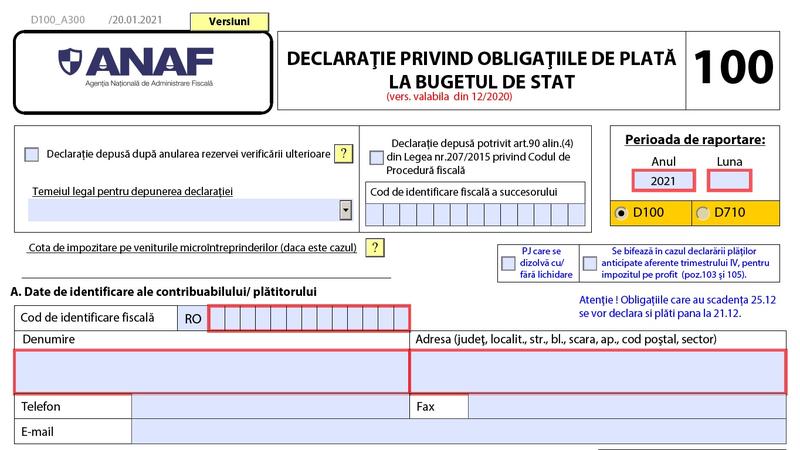 Noua variantă a Declarației 100 a fost publicată miercuri pe site-ul Agenției Naționale de Administrare Fiscală (ANAF). Aceasta este foarte importantă pentru microîntreprinderi, mai ales că acum pot deduce cheltuielile cu casele de marcat (facilitate introdusă prin Legea 153/2020).