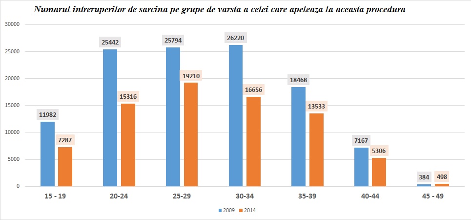 Daca ne uitam pe cifrele avorturilor mai detaliat, pe grupe de varsta mai exact, observam insa ca avorturile facute de populatia din grupele de varsta 25-29 de ani si 30-34 ani sunt fiecare mai numeroase decat cele din grupa de varsta 19-24 de ani. Datele, mai jos: