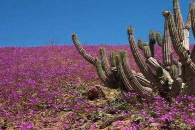 Desertul Atacama este localizat in Chile, la sute de kilometri de capitala Santiago. In acest an, locul, care este considerat cel mai uscat din lume, a avut parte de cantitati neasteptate de ploaie. Acum, privelistea de obicei arida este umpluta de flori multicolore. Acest fenomen este cunoscut drept „desertul infloritor”, pe parcursul caruia aproximativ 200 de plante desertice incep sa germineze datorita ploilor care au loc in luna martie.