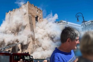 Eforturile de salvare a lui Stroici au fost întrerupte când o a doua secțiune a turnului înalt de 29 de metri a început să se prăbușească din nou, cărămizile căzând în valuri și creând un nor uriaș de praf.