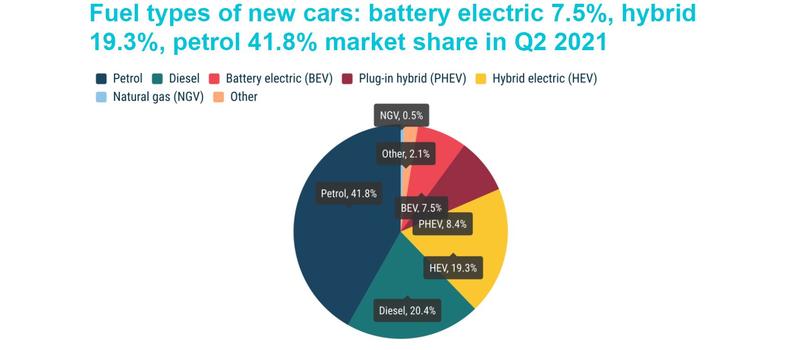 Au atins o cotă record de 7,5% din piață trimestrul trecut, iar la șase luni totalul în UE a fost de 356.000 unități, ceea ce înseamnă mai mult decât dublu față de primul semestru din 2020. Germania a afișat cifre uriașe (148.000), iar în Franța au fost 72.000. Trebuie spus că Germania, cu un al doilea trimestru în care totalul a fost de 84.000 a stabilit un record de înmatriculări de mașini electrice într-o țară UE.