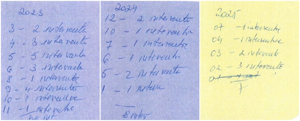 În anul 2025, conf. dr. Tiberiu Paul Neagu a efectuat trei intervenții chirurgicale în luna februarie, două în luna martie, una în luna aprilie și una în luna iulie.