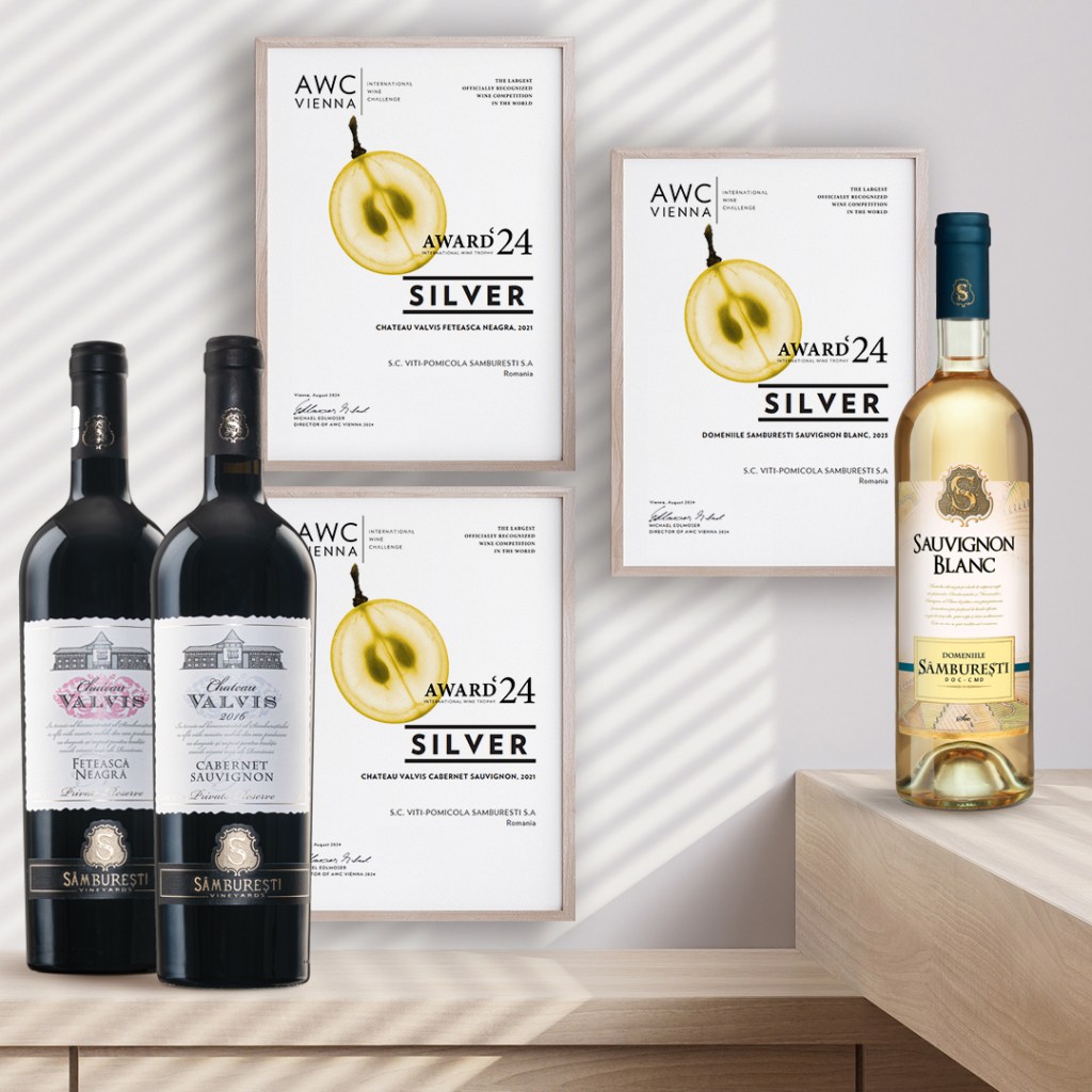 În plus, vinul DOMENIILE SAMBURESTI CHARDONNAY, 2023 a fost recompensat cu o medalie de bronz, iar în cadrul festivalului Mundus Vini 2024, crama a obținut și două medalii de argint pentru vinurile Chateau Valvis Cabernet Sauvignon 2021 și Chateau Valvis Chardonnay 2023.