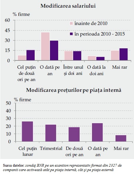 Majoritatea companiilor modifica preturile cel putin o data la sase luni, in timp ce salariile sunt stabilite in anual sau chiar mai rar