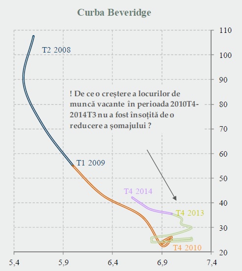 Astfel, manifestarea unui „efect de histerezis” ulterior declansarii crizei, care a constat intr-o depreciere a capitalului uman odata cu prelungirea perioadei in care dl Ionescu ramane somer a facut ca acesta sa devina mai putin atractiv pentru angajatori. In plus, redresarea economiei romanesti s-a realizat pe o structura mai competitiva si, prin urmare, companiile au devenit mai exigente in privinta aptitudinilor candidatilor. Din acest punct de vedere, au aparut neconcordante mai accentuate intre cererea si oferta de forta de munca, amplificata de incapacitatea sistemului de educatie de a genera personal cu o calificare adecvata necesitatilor economiei (reflectata intr-o rata ridicata a somajului in randul tinerilor).