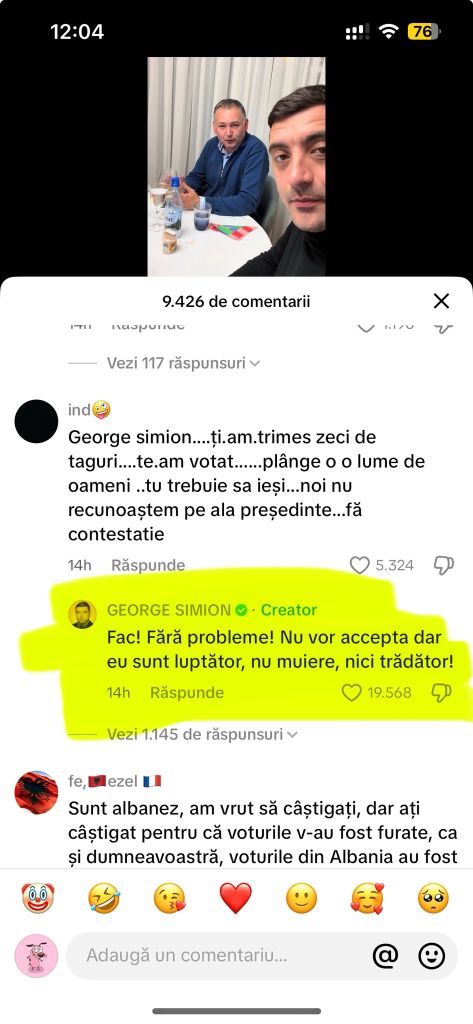 George Simion a dat de înțeles încă de luni seara, pe TikTok, că va contesta rezultatul alegerilor. Într-un comentariu pe TikTok un urmăritor l-a îndemnat să facă contestație.