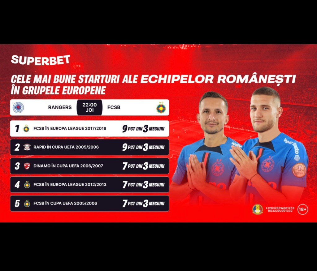 Egalează campioana cel mai bun start în grupe? SuperOfertă și o SuperPromoție pentru Rangers – FCSB