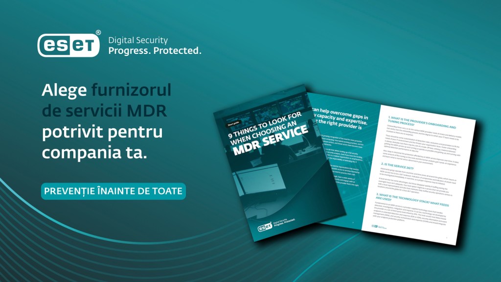 Un scurt ghid privind aspectele principale care trebuie avute în vedere la alegerea unui serviciu MDR a fost elaborat de către specialiștii ESET și poate fi descărcat gratuit AICI.