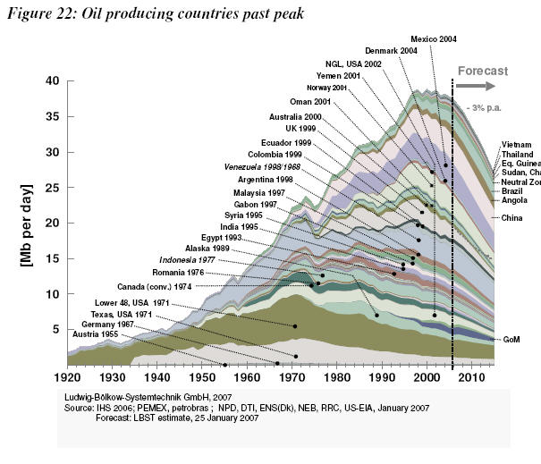 Ceea ce este indiscutabil este ca productia de energie din combustibili lichizi per capita este in scadere. De partea cealalta a balantei este folosirea mai eficienta. Acesti doi factori; cresterea populatiei si a eficientei putem considera ca se anuleaza. Avem o crestere a populatiei de 1,1 procente anual si o crestere a eficientei de 1,2 procente anual (ambele cifre sunt aproximative). E destul de greu de prevazut care din cele doua cresteri o sa prevaleze in anii care vin.