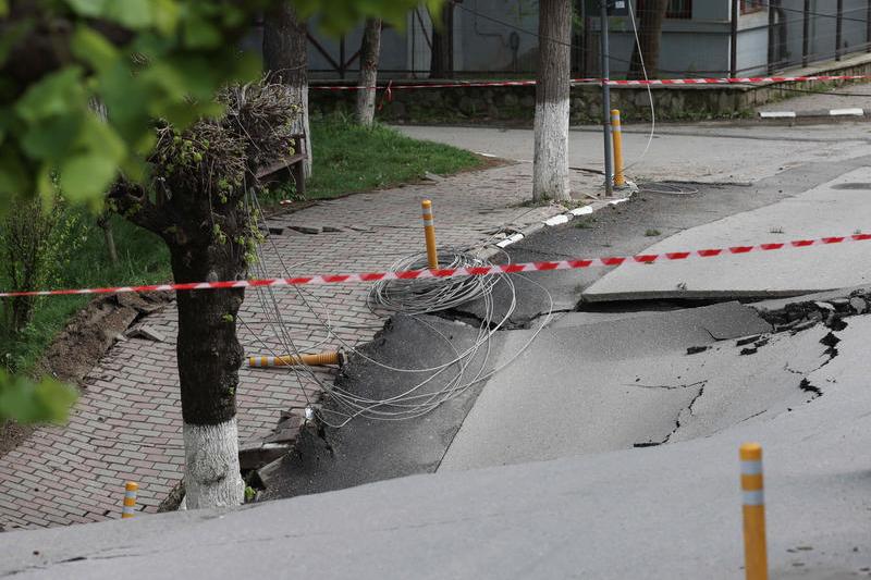 Stradă surpată în Slănic, Prahova, Foto: Inquam Photos / Sabin Cirstoveanu