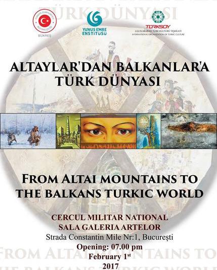 Expoziţia itinerantă „Lumea turcică din Munţii Altai până în Balcani”, ce aduce in fata publicului 33 de picturi în ulei semnate de tot atâţia artişti din 17 ţări, se va deschide pe 1 februarie, ora 18,30, la Galeria Artelor din cadrul Cercului Militar Naţional.