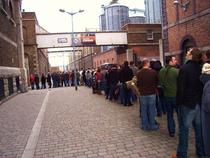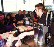 Coada de 400 de persoane la care ne asezam avanseaza foarte repede: in 25 de minute am si intrat in interior, ghidati de tineri imbracati din cap pina in picioare in elemente „Guinness”.