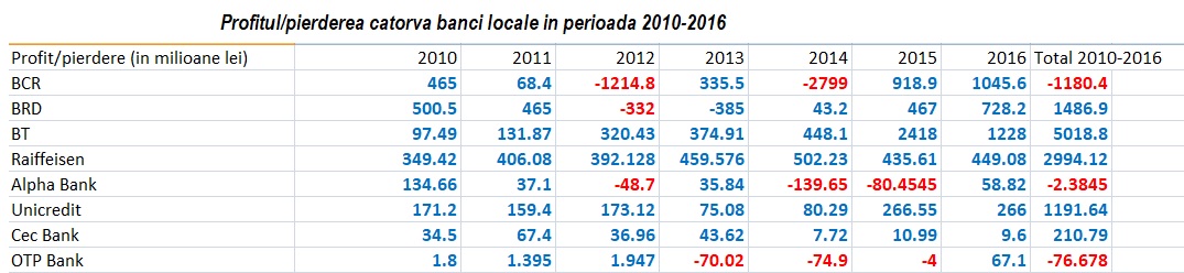 Aveti mai jos o imagine, luata din raportarile financiare facute de institutiile de credit: