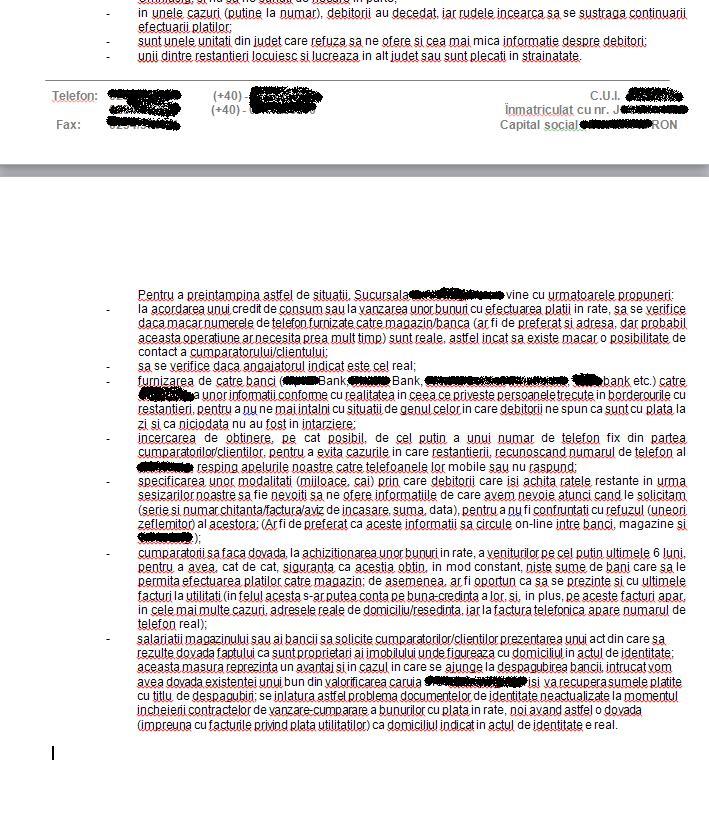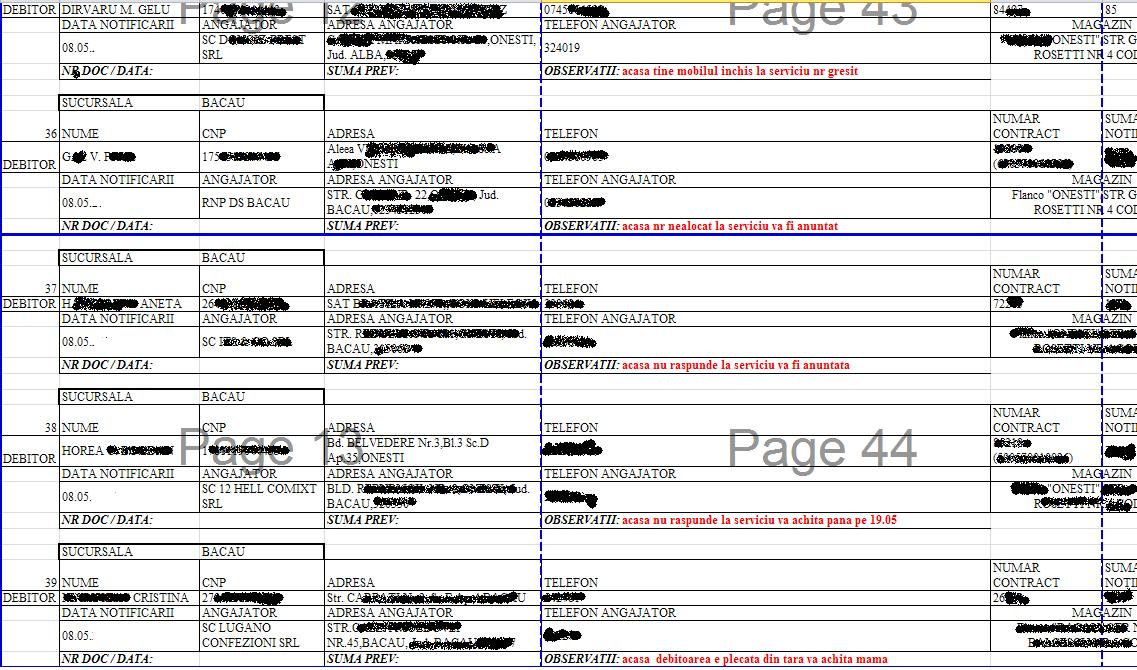 (Fotografia de mai jos face parte dintr-un document intern al unei banci,de circa 60 de pagini, cu restantierii unei singure sucursale ale unei banci din zona Moldovei)