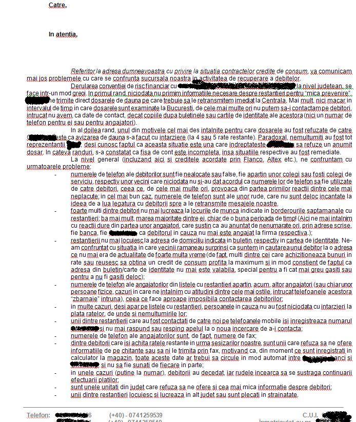 (Mai jos aveti o scrisoare a unei companii de asigurari, in care sunt „povestite” necazurile provocate de creditele de consum” date de banci)