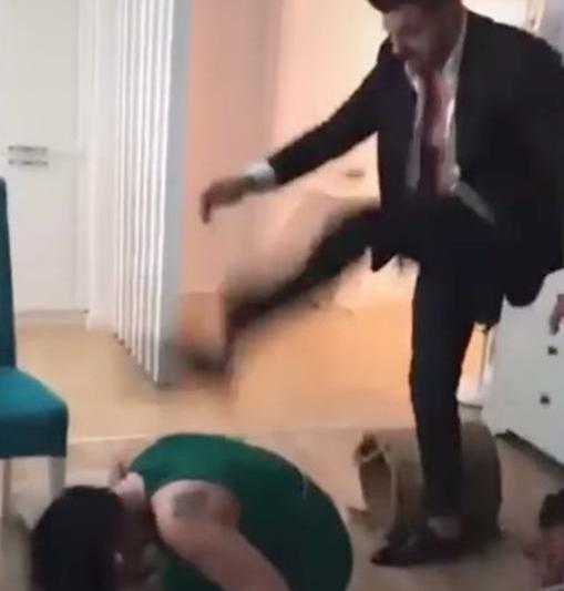 În imagini – pe care am ales să nu le difuzăm, se poate vedea cum femeia, care este așezată în genunchi pe podea, este lovită cu picioarele în cap, în spate și în stomac, iar la un moment dat bărbatul îi varsă în cap apa dintr-o frapieră.
