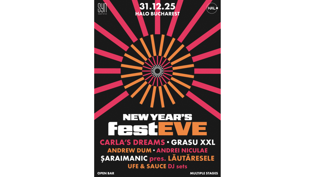 Cu o producție de festival desfășurată indoor și mai multe scene active simultan, FestEVE propune un line-up eclectic, în care energia urbană este dusă la un nou nivel. Pe scenă vor urca Carla’s Dreams, Grasu XXL, Andrew Dum, Andrei Niculae, Șaraimanic pres. Lăutăresele, UFe & SAUCE în seturi speciale, alături de alți artiști care vor fi anunțați curând. Fiecare scenă este gândită ca un univers distinct — cu propriile visuals, ritmuri și atmosferă — permițând fiecărui participant să-și creeze propriul traseu și propria poveste a nopții.