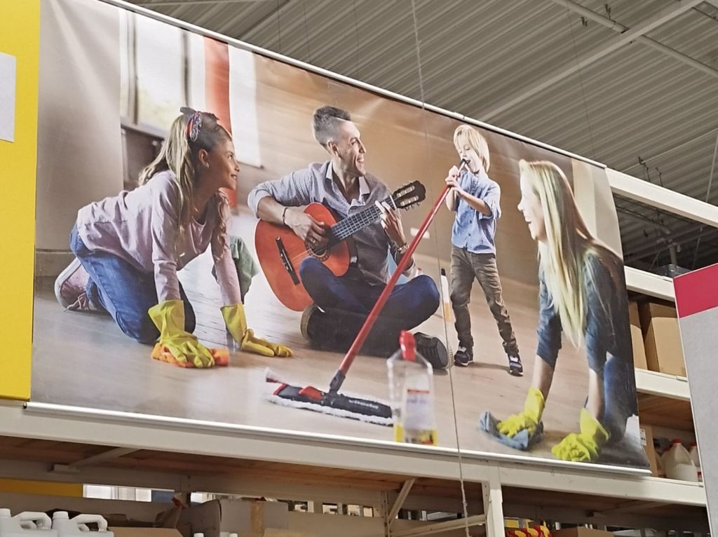 Un afiș cu o familie, postat în magazinele Leroy Merlin, a atras acuzații din partea Centrului Filia că încurajează stereotipurile despre femei și fete și promovează ideea că munca domestică aparține femeilor. Ce arată afișul? Mama și fiica stau în genunchi și fac curățenie, în timp ce băiatul și tatăl cântă. În replică, pe Facebook, magazinul Leroy Merlin a transmis că „Ne-a făcut să ne oprim și să reflectăm„