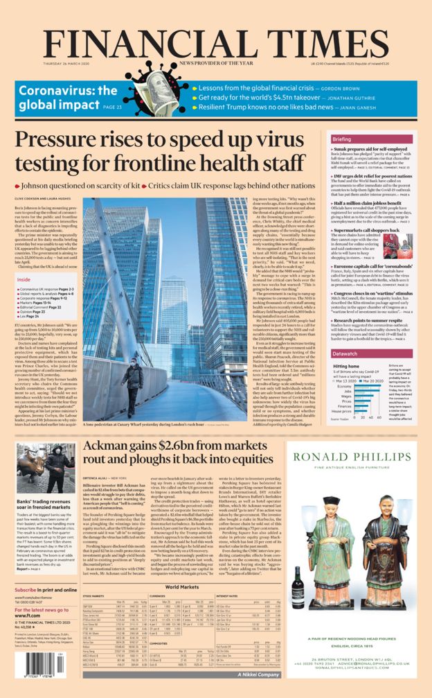 Întrucât epicentrul pandemiei s-a mutat din Asia în Europa și în Statele Unite, guvernele se confruntă cu opțiuni dintre cele mai dure: “Dacă își blochează industria și construcțiile, după ce spectacolele și deplasările au fost deja blocate, recesiunea rezultată le-ar afecta economiile pe o perioadă mai îndelungată; dacă nu fac asta, s-ar putea ca navetiștii și ceilalți salariați să se îmbolnăvească și să continue răspândirea virusului, prelungind criza din sănătate și regresul economic”.