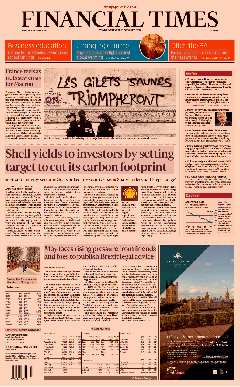 Financial Times: Directorul Volkswagen avertizează cu privire la 2019- „cel mai dificil an întâlnit vreodată” ● Erdogan îl atacă pe prințul moștenitor saudit în cazul Khashoggi ● The Guardian: Prejudecățile rasiale de zi cu zi din Marea Britanie ● Le Monde: După violențele din 1 decembrie, guvernul se confruntă cu o criză majoră ● Handelsblatt: Șefii BMW, Daimler și VW se văd marți cu Donald Trump. Cotidianul austriacKurier (link) publică un interviu cu preşedintele României Klaus Iohannis despre apropiata preluare de către România a preşedinţiei Consiliului UE. Lectură plăcută!